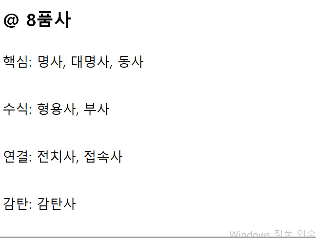 영어에는 8가지 품사가 있다.