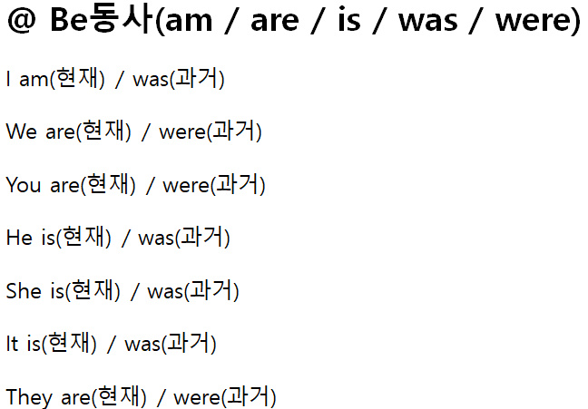 이번엔 be동사 과거 시제 일시 어떻게 하는지 살펴봅니다.