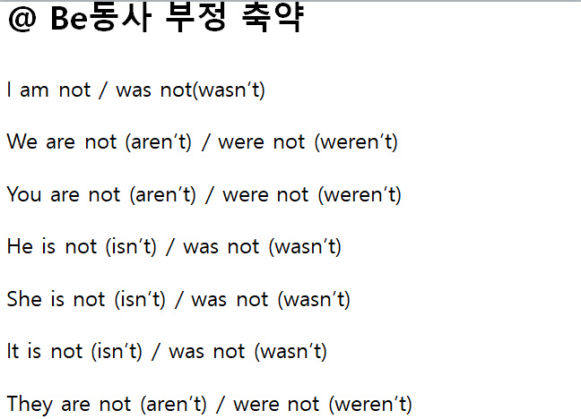 중요한 점은 축약할 때 am not은 줄이지 못합니다. 꼭 기억하세요.