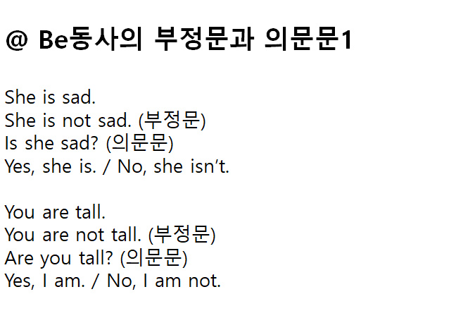 be동사의 의문문, 부정문에 대해서 알아봐요.