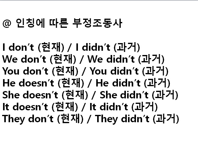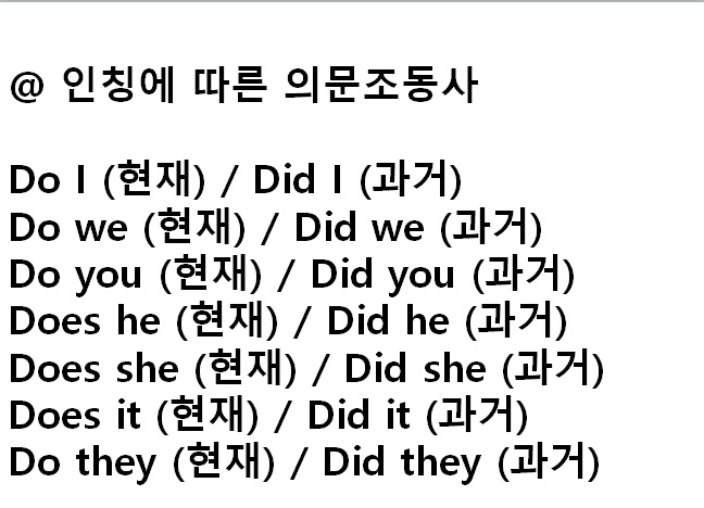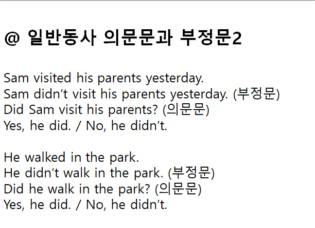 예문 보시다시피 일반동사 과거의 부정과 의문은 인칭에 관계없이